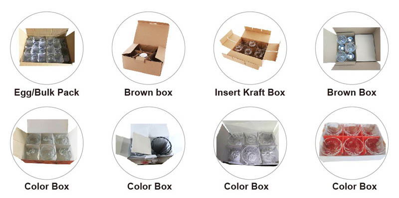 A pack of 6pcs glass ice cream cup can do your shrink pack or color box pack, 3 designs accept 3 package layout.