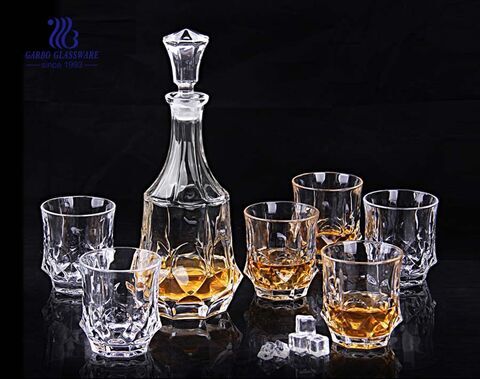 Garbo designed transparent whisky glass decanter set stock embossed wine glass sets