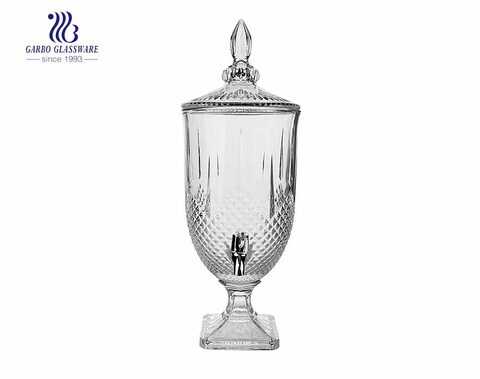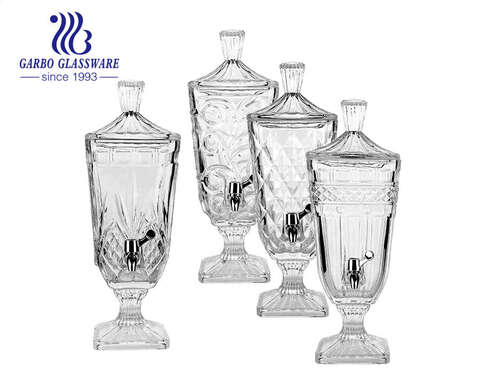 High-white Machine-made Embossed Glass Beverage Juice Beer Wine Dispenser with Engraved Leaf Design for Bar Home