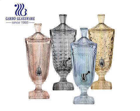2L 2000ml big size coloful ion plating embossed design glass juice dispenser with plastic tap